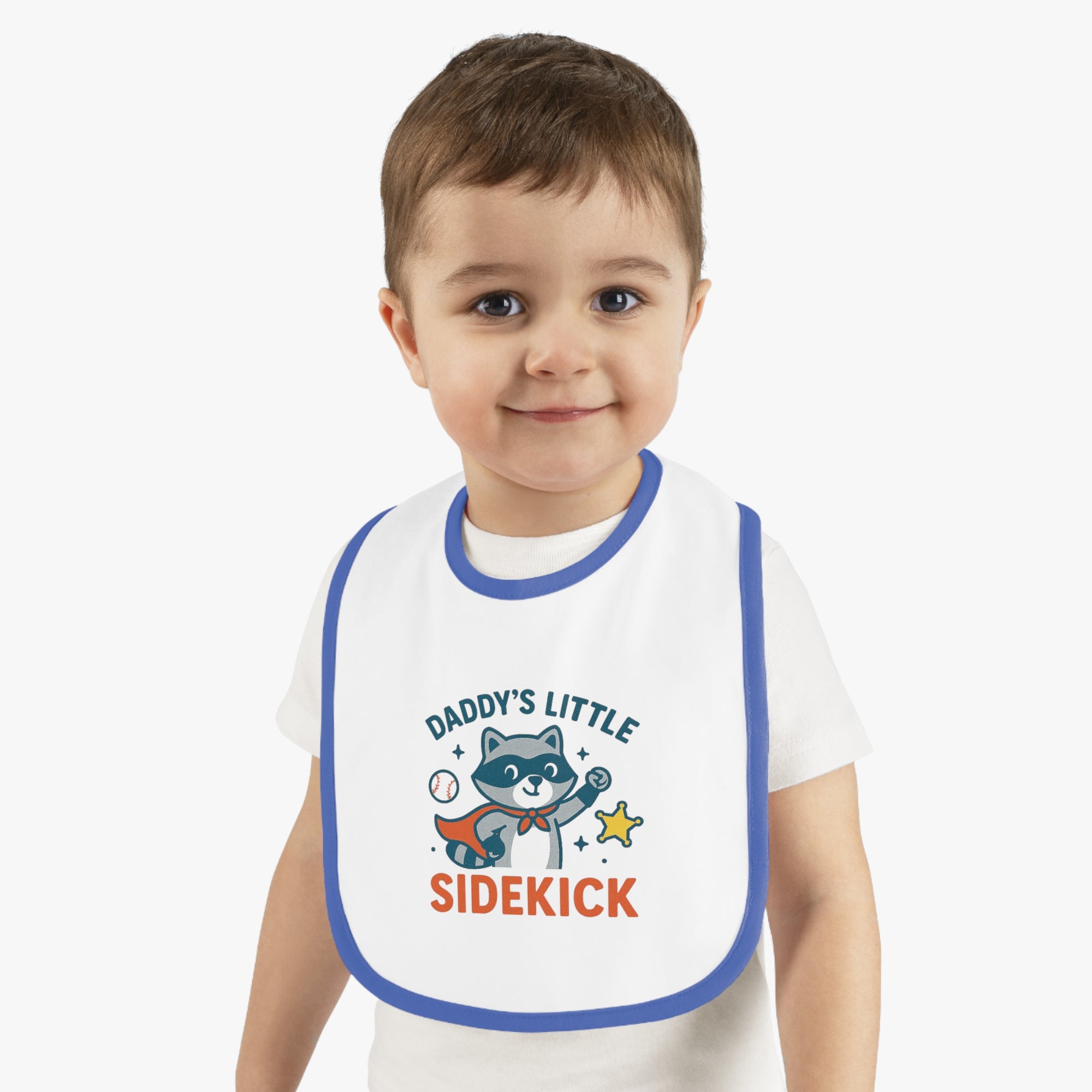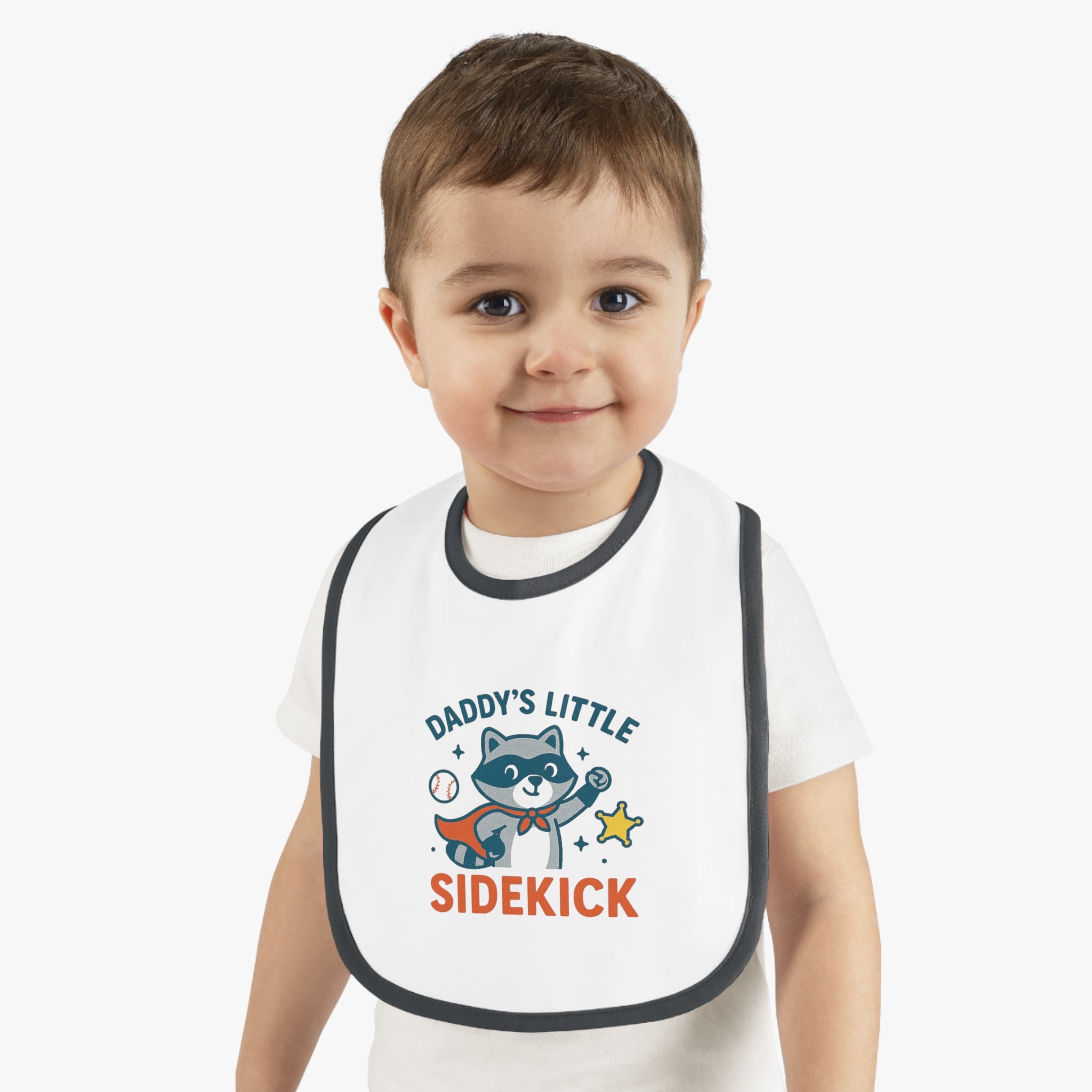 This adorable Baby Bib is designed to bring charm and functionality to mealtimes. Featuring a playful ‘Daddy’s Little Sidekick’ design, it’s perfect for your little one who’s always ready for fun. Crafted with soft, 100% combed and ringspun cotton, this bib ensures comfort while being durable enough to withstand regular use. Its vibrant color contrast adds a fun pop to your baby's outfit, making it a must-have for any budding foodie. Ideal for everyday use, this bib is especially great for celebrating milestones like first foods or birthdays. It makes a thoughtful gift for new parents and is perfect for baby showers, holidays, or just to brighten up your child's wardrobe!